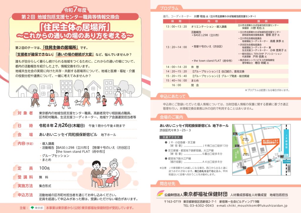 東京都内の地域包括支援センター職員、高齢者見守り相談拠点職員、区市町村職員、生活支援コーディネーター、地域ケア会議運営担当者等