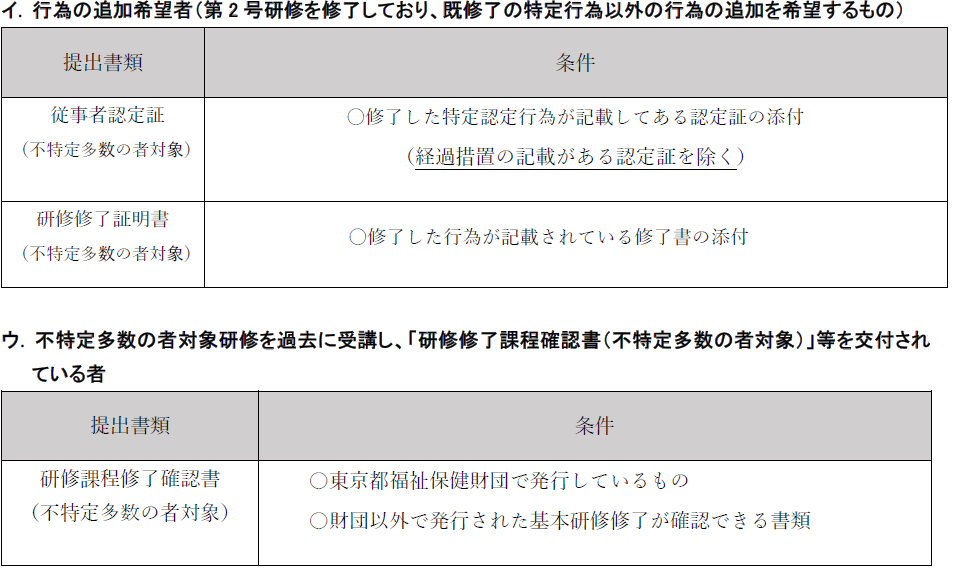 既に2号研修を修了し、既修了の特定の行為以外の行為追加を希望する方