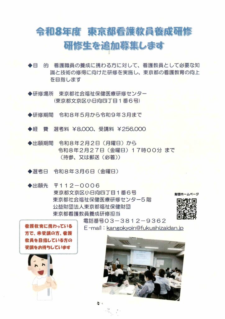 令和8年度東京都看護教員養成研修追加募集要項
