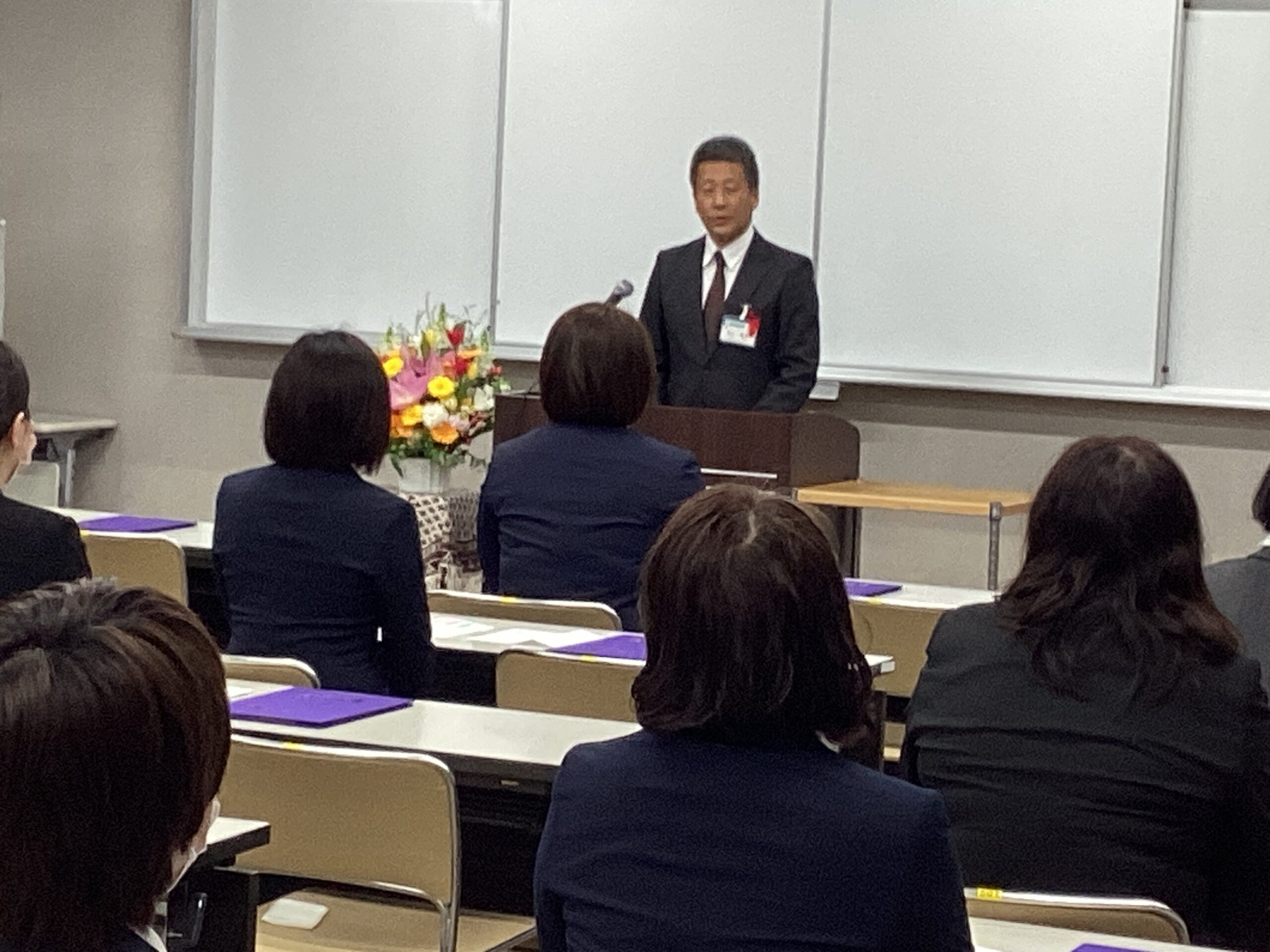 最後に研修生代表が「同じ目標を持った仲間とともに、切磋琢磨しながら、初心を忘れず学業に励み、看護の発展のために力を尽くしていく覚悟です」と研修への力強い決意を語りました。約1年間の研修で「学ぶこと」の意味を体得してくれることを確信しました。
