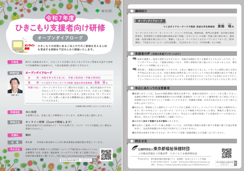 - 支援者向け研修「オープンダイアローグ」