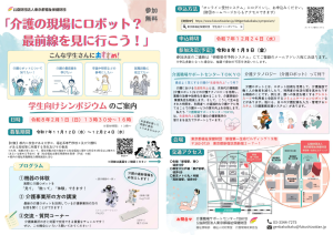 実際に、介護の現場の方と対面で交流したり、介護ロボットに触れたりすることができる貴重な機会ですので、この機会にぜひご参加ください。